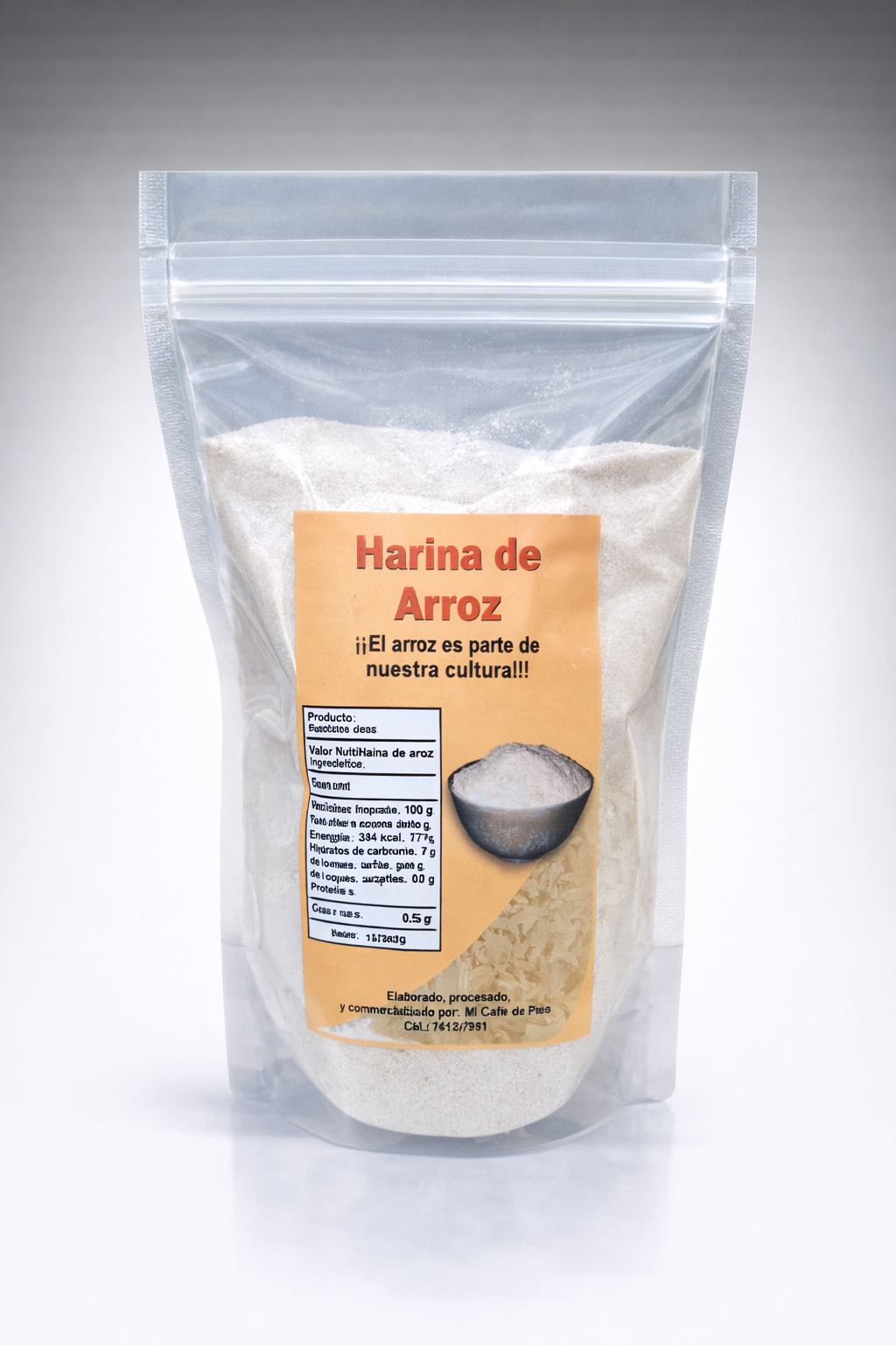 Harina de arroz natural elaborada a partir de arroz seleccionado. Ideal para repostería, empanizados y diversas preparaciones culinarias, con textura fina y sabor suave.